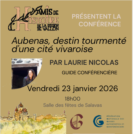 ) - Vendredi 6 Février visite guidée d'Aubenas et de son château: rendez-vous à 10h 30 à Aubenas pour la visite jusqu'à midi.Prix : 7 euros/pers Pour l'après-midi,facultative, repas puis visite des ruelles.