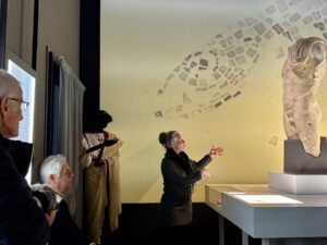 Découverte en 1992 du buste en marbre de l’empereur Trajan, du 5ème siècle avant notre ère, dans un site religieux au nord d’Alba, qui a pris sa place au musée en automne 2024. La statue devait mesurer plus de 3 mètres, posée sur un socle de plus d’un mètre. L’Empereur était assimilé à une divinité.